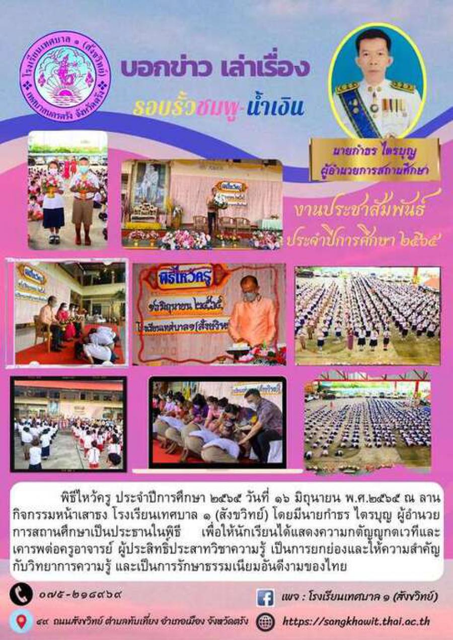 พิธีไหว้ครู ประจำปีการศึกษา ๒๕๖๕ วันที่ ๑๖ มิถุนายน พ.ศ.๒๕๖๕ ณ ลานกิจกรรมหน้าเสาธง โรงเรียนเทศบาล ๑(สังขวิทย์)