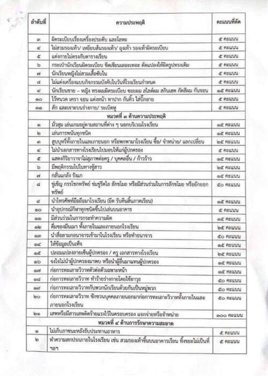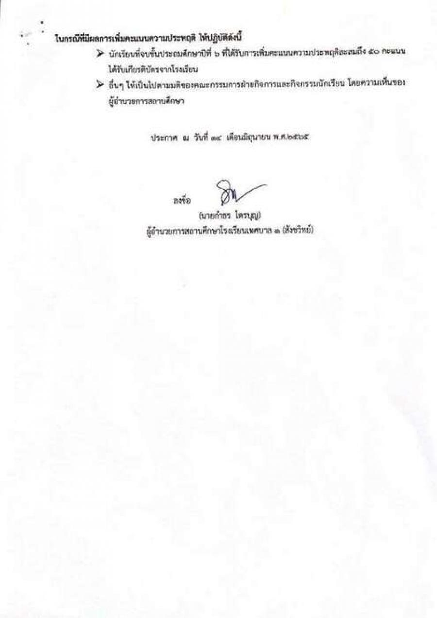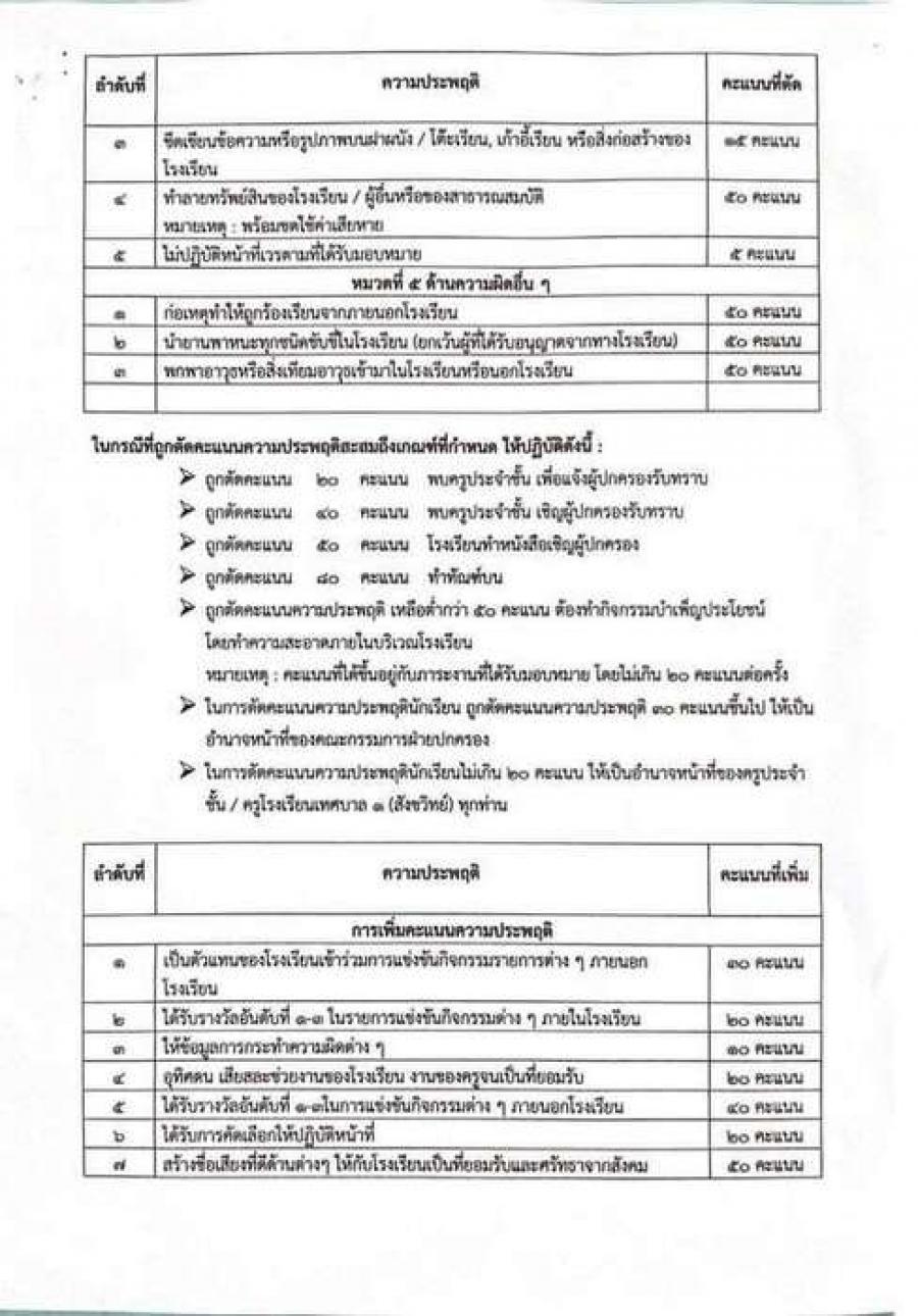 ประกาศเรื่องการตัดและเพิ่มคะแนนความประพฤตินักเรียน