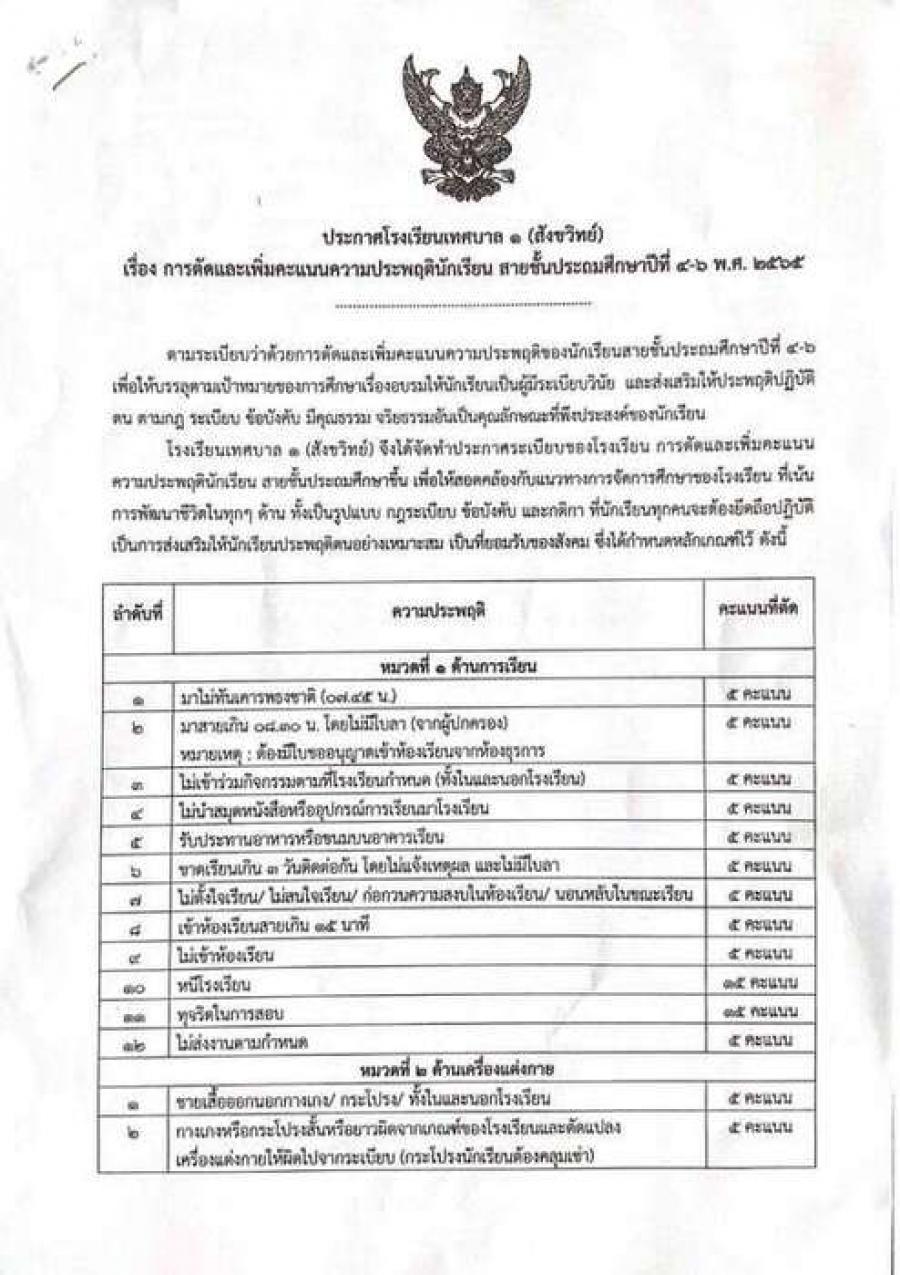 ประกาศเรื่องการตัดและเพิ่มคะแนนความประพฤตินักเรียน S:0